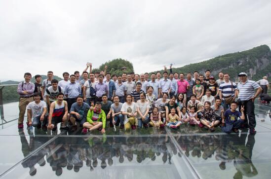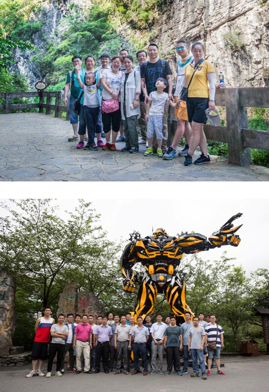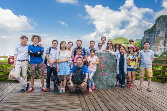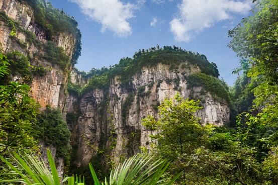 七月的山上居然像秋天一樣涼冷。風(fēng)刮的特別大,還下了蒙蒙小雨,天哪,這氣溫相差也太大了吧!為了能增加一點(diǎn)溫度,我們便一路狂奔,不知不覺,我們跑進(jìn)了一片竹林。這里非常幽靜,像鬼片里的密林,我和同事們停下跑動的腳步,慢慢的走著并大聲說著話給自己壯膽。終于,步行了1.5小時后,我們才繞出了樹林,來到懸崖上的步行梯上。這里真可怕,只要向下看一眼,心就“怦怦”地跳個不停。為什么說它可怕呢?因?yàn)檫@些步行梯全建在近百米高的懸崖半山腰上,上下都無著落點(diǎn),我真的很難想像工人們是如何建成的這些供人們行走的臺階。我們快速的跑過這里,來到了一個幽深的黑洞里。這兒真涼快,不冷不熱,溫度剛剛好。于是大家停了下來,稍作休息后,繼續(xù)往前走。